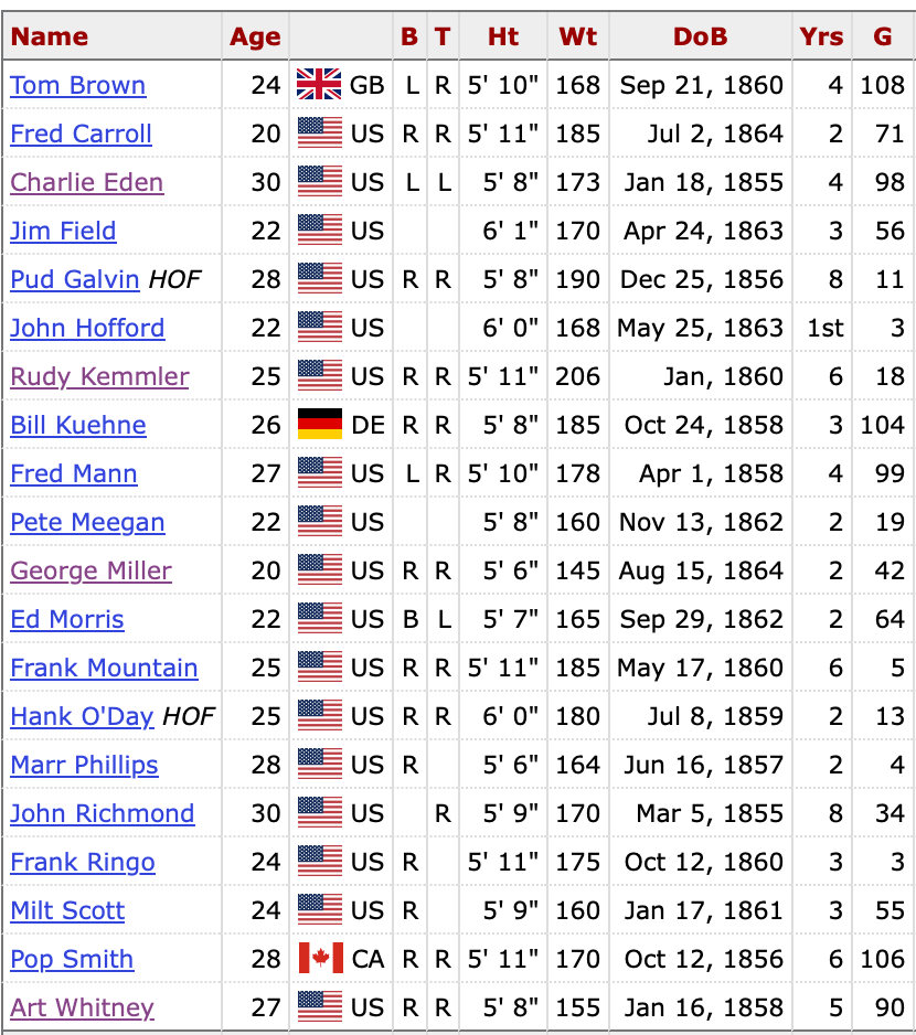 A vast change from the ways along the Allegheny in 1884, the team had only used 20 total batters (including pitchers) this season, which was exactly league average.